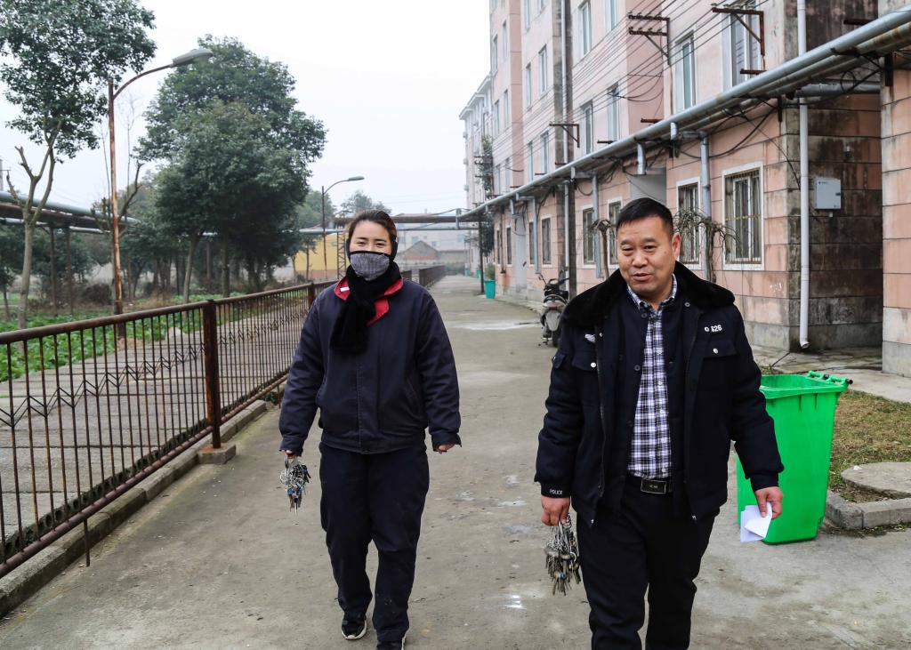 坐標(biāo):工人村,農(nóng)歷年三十下午16點(diǎn)30分,兩名物業(yè)公司留勤職工結(jié)束最后一棟職工宿舍巡查。