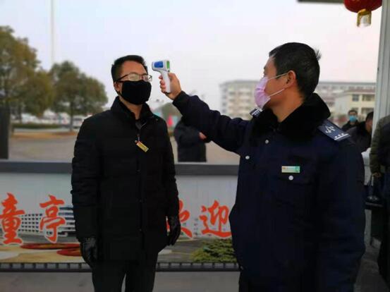 “董部長(zhǎng),請(qǐng)下車測(cè)體溫。”物業(yè)分公司部長(zhǎng)董昌軍剛把車開(kāi)到該處機(jī)關(guān)大門(mén)口,就被保衛(wèi)人員楊瑞廷攔下了。“你們頂頭上司你也敢攔?”旁邊有人打趣道。“一車一檢,一人一登記、測(cè)體溫,我們是按門(mén)衛(wèi)制度辦事,堅(jiān)決不能漏過(guò)一車一人,不是假期值班人員,其他人現(xiàn)在還不讓進(jìn)呢。”楊瑞廷解釋說(shuō)。