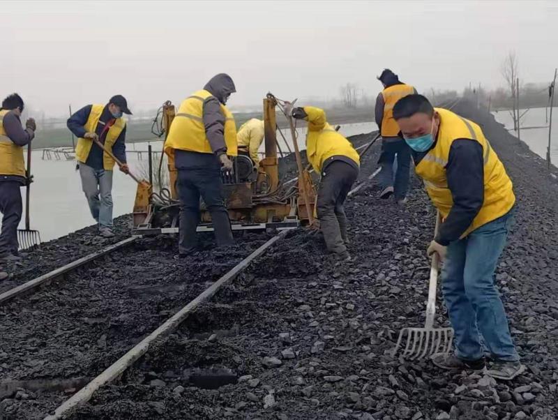 “今天,咱們重點(diǎn)對(duì)王橋至朱仙莊3公里的塌陷線路進(jìn)行整治,高度在260-300毫米,大家都各自忙活起來(lái),爭(zhēng)取早點(diǎn)把活干完”。防疫工作完成后,葛呈建簡(jiǎn)練地安排了塌陷回填任務(wù),就和工友們一起熱火朝天地干起來(lái)。只見(jiàn)他拿起鐵鍬,一邊帶頭鏟矸石,一邊提醒各環(huán)節(jié)注意事項(xiàng)。“砍小塞的要砍住,讓小塞起作用”“搗固的時(shí)候要對(duì)吊板的地方多搗固幾下”,“上道咋要把道砟上夠搗固的,缺道砟的地方要多上些”。在他的指揮下,各項(xiàng)工作有條不紊進(jìn)行。