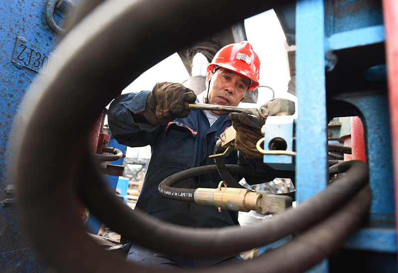 該礦保運(yùn)區(qū)職工王飛進(jìn)行提升液壓站日檢。