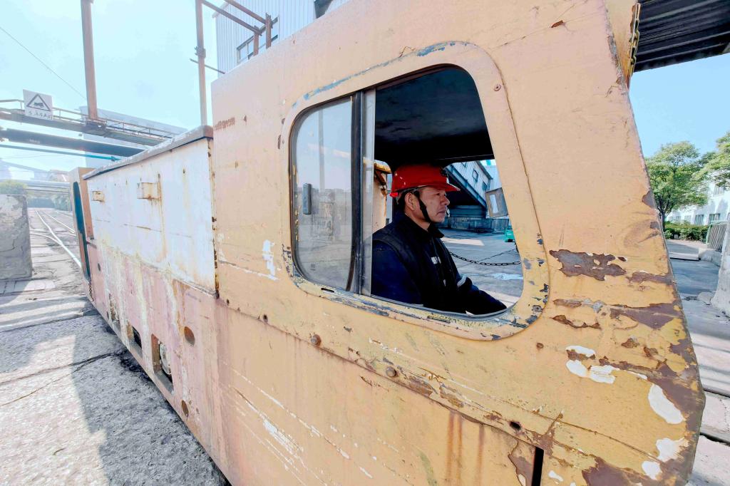圖為運(yùn)輸區(qū)電機(jī)車司機(jī)劉召正在拉運(yùn)即將入井的物料