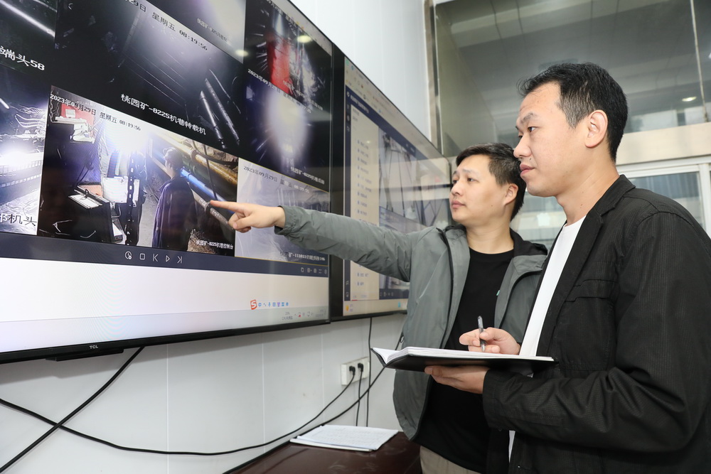 安監(jiān)處安檢員林松、宋玉視頻篩查“三違”行為。
