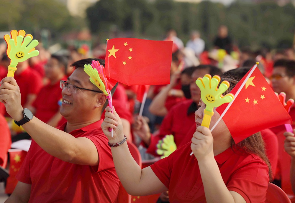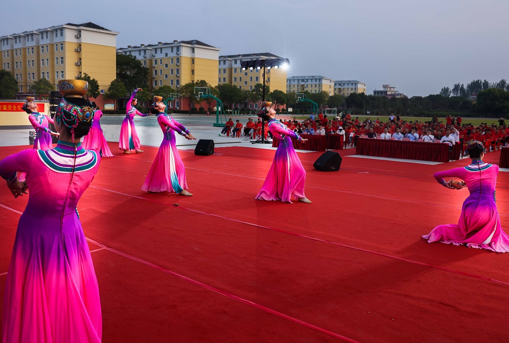 演出在舞蹈《鼓舞神州》中拉開(kāi)序幕,隨后男女聲二重唱《新萬(wàn)泉河水》、相聲《機(jī)智問(wèn)答》、魔術(shù)《快樂(lè)十分》、京劇《武家坡》、小品《金錢(qián)與孝子》等節(jié)目輪番上演。一首首膾炙人口的歌曲,一段段婉轉(zhuǎn)悠揚(yáng)的旋律,一支支優(yōu)美多姿的舞蹈,讓現(xiàn)場(chǎng)觀眾沉浸在歡樂(lè)的氛圍中。臺(tái)上演員們?nèi)橥度耄_(tái)下觀眾積極互動(dòng),或跟唱歌曲,或打著節(jié)拍,現(xiàn)場(chǎng)氣氛融融。最后,演出在歌曲《奮斗吧追夢(mèng)人》中圓滿(mǎn)落下帷幕。