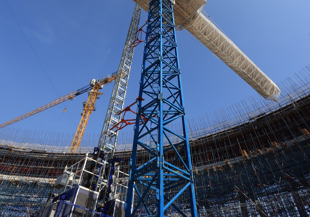 聚能發(fā)電公司2×660兆瓦超超臨界機(jī)組工程項(xiàng)目冷卻塔施工現(xiàn)場(chǎng)。(陳 彪 攝)